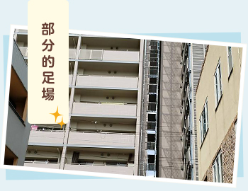 マンションの隙間など、狭い部分でも安全に作業ができる足場をご提供。