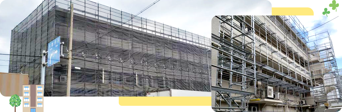 マンションやアパート、ハイツなどの建物の足場工事もお任せください。
